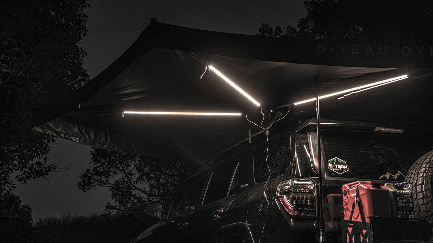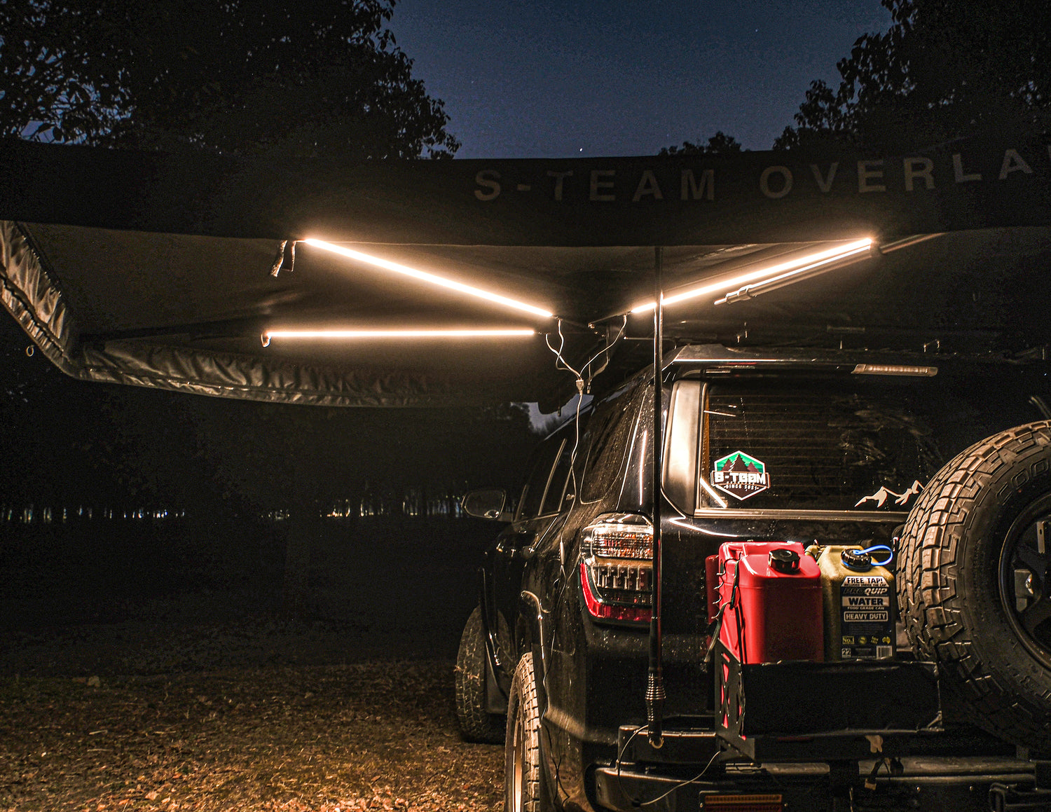 - The awning comes with three 3-color LED light strips, eliminating the need for any additional lighting during the night